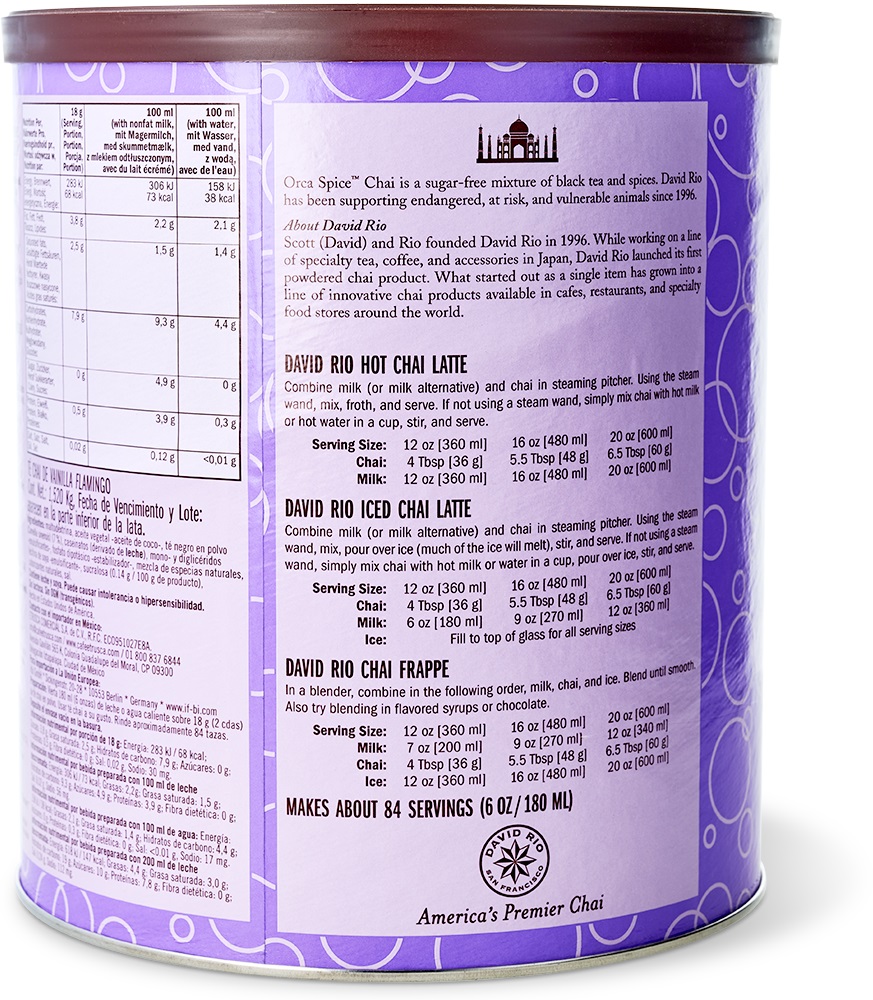 Kein Café, keine Bar oder kein Coffee Shop kann mittlerweile auf den exklusiven David Rio Chai Latte verzichten. Der wohl bekannteste Chai aus San Francisco wurde mehrfach mit Preisen ausgezeichnet. Gegründet wurde das Unternehmen in dem Jahr 1996. Das Sortiment umfasst 11 verschiedene Sorten Chai mit einem unverwechselbaren Geschmack.