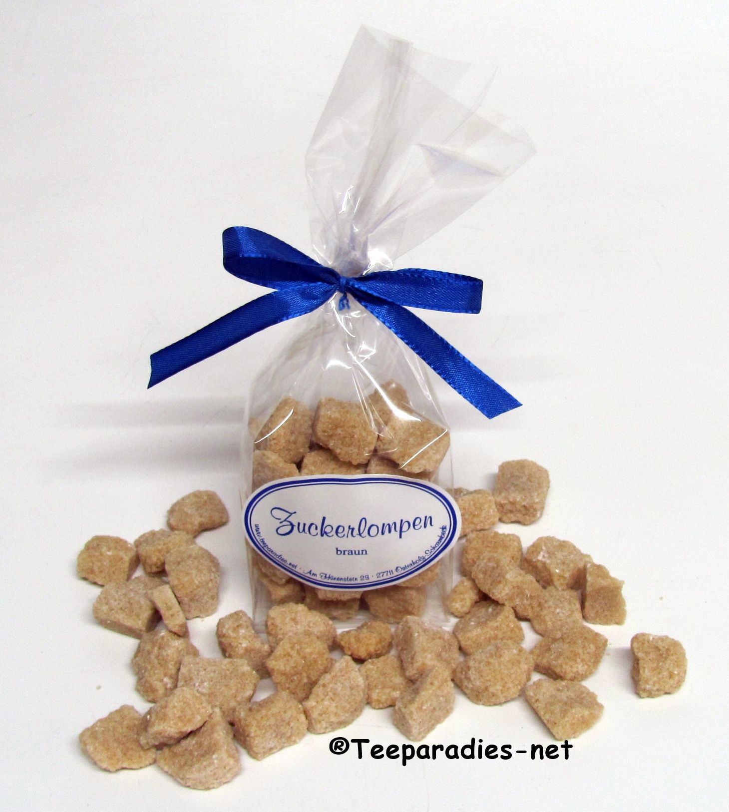 Zuckerlompen, auch bekannt als Lompenzucker, sind unregelmäßig geformte Brocken aus braunem, unraffiniertem Rohrzucker mit einem intensiven Karamellgeschmack und einer leichten Süße. Sie lösen sich gut in heißen Getränken wie Tee oder Kaffee auf und sind eine besondere Spezialität zum Süßen von Heißgetränken. Ideal für die ostfriesische Teezeremonie. In Ostfriesland ein Muss…