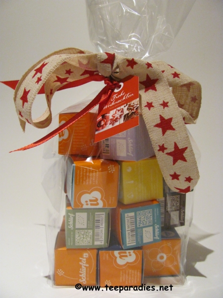 Die Daten der Inhaltsstoffe und Nährwerte entnehmen Sie aus den Angaben des Schlürf Tees. Alle Schlürfel verpackt in einer Cellophantüte mit orangem Schleifenband.