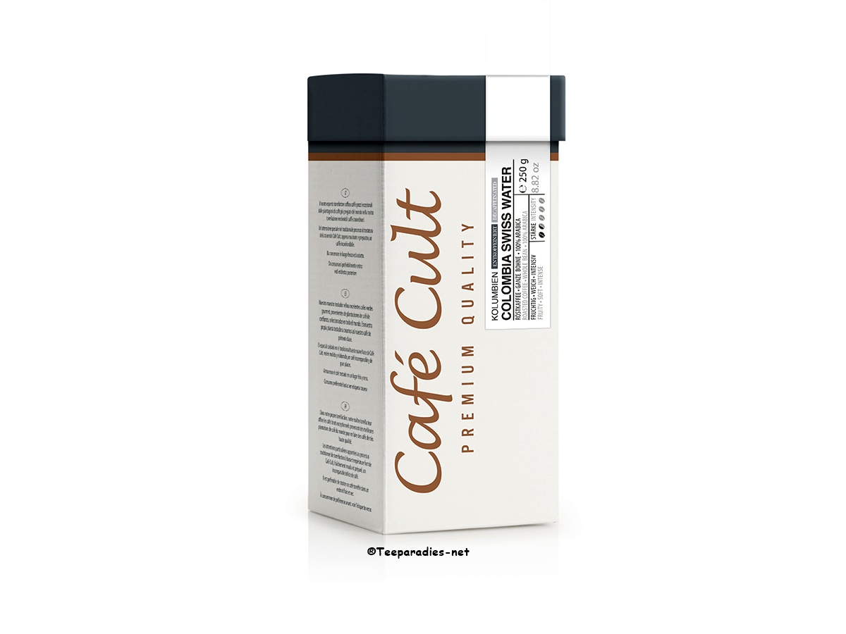 Café Cult: Kaffee Kolumbien „Swiss Water Process“ in 250 g Tüte, ganze Bohne entkoffeiniert