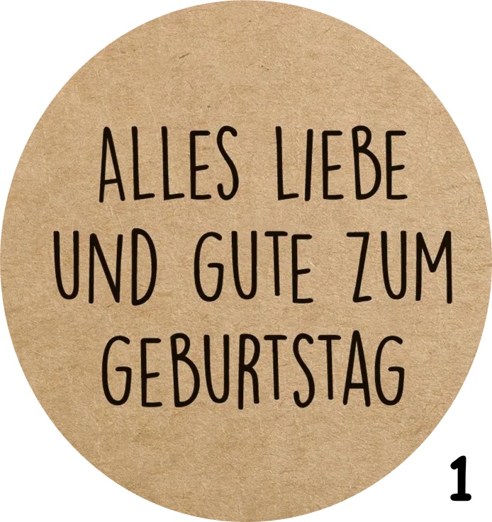 1. „Alles Liebe zum Geburtstag“ rund neutral beige mit schwarzer Schrift