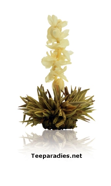 In China ist es nur sehr wenigen Masterbinderinnen die Fähigkeit vorbehalten, den Erblüh-Tee per Hand zu einem einzigartigen Kunstwerk zu binden. Der Erblüh Tee ist eine Rarität. Innerhalb der Kugel befinden sich natürliche und eingebundene Blüten in unterschiedlichen Formen und Farben.