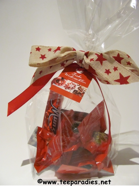 Folgende Sorten sind in einer Cellophantüte verpackt mit Weihnachtsschleifenband und rotem Weihnachtskärtchen.