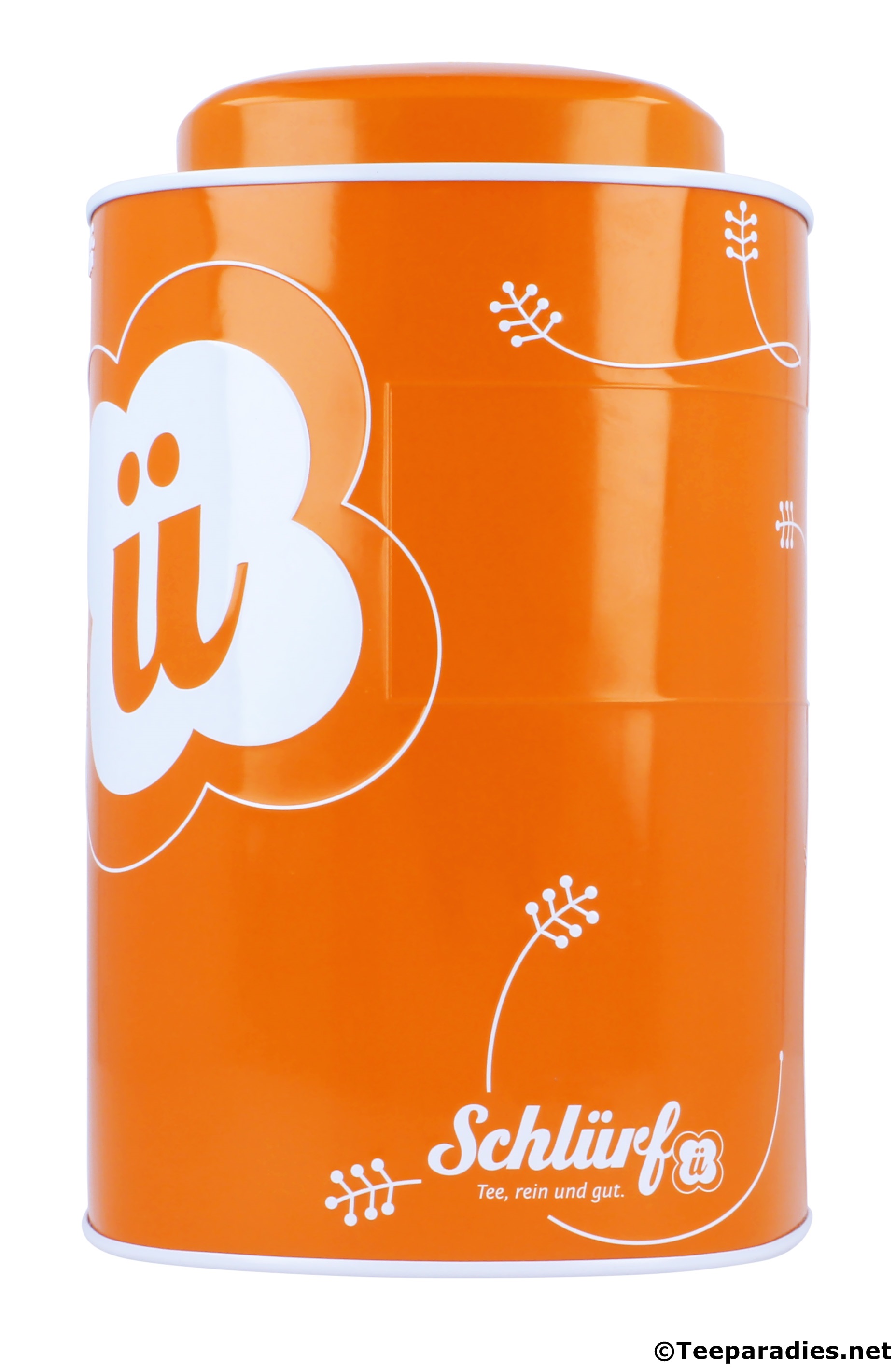 Um losen Tee noch besser aromadicht zu lagern, empfehlen wir ihnen die hochwertig geprägte Schlürf Metalldose. Die Metalldose (H170 x B107mm) ist mit Innendeckel und Prägung.