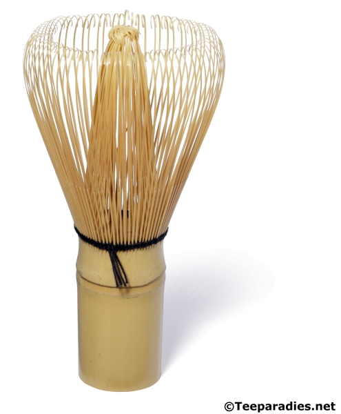 Das Aufschäumen des Matchas wirkt sehr entspannend. Es gibt kein anderes Gerät, das den Matcha so sanft und doch effektiv vermischt, wie der Bambusbesen (Chasen). Der Chasen ist von sehr guter Qualität.